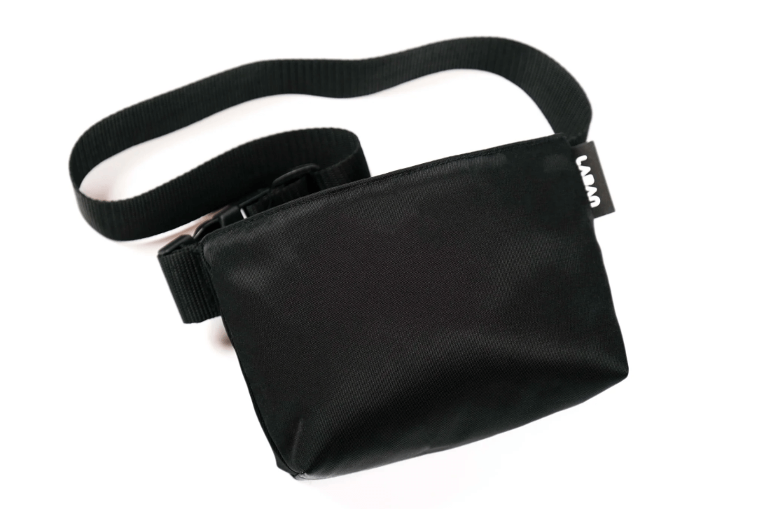 Designen är både praktisk och genomtänkt. Den kan bäras runt midjan eller över axeln, och det justerbara bältet gör att den sitter bekvämt oavsett kroppstyp. På framsidan finns en smidig ficka med blixtlås där du kan förvara mobil, nycklar eller bajspåsar, samt en invändig krok för att fästa tillbehör.
